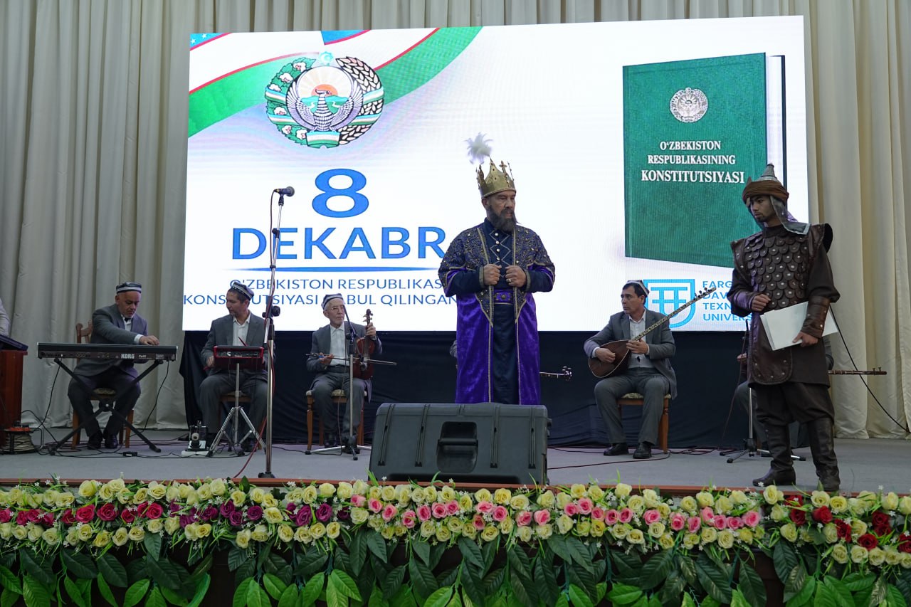 Tadbirni universitetning maʼnaviy va maʼrifiy ishlar boʼyicha birinchi prorektori Sh. Dehkanov ochib berdi va tadbir ishtirokchilariga FDTU rektori, professor Oʼ. R. Salomovning bayram tabrigini oʼqib eshittirdi.