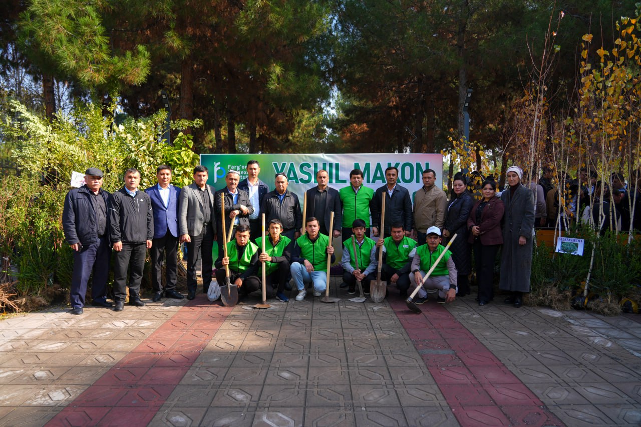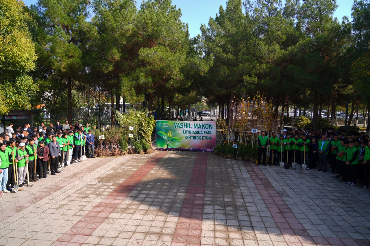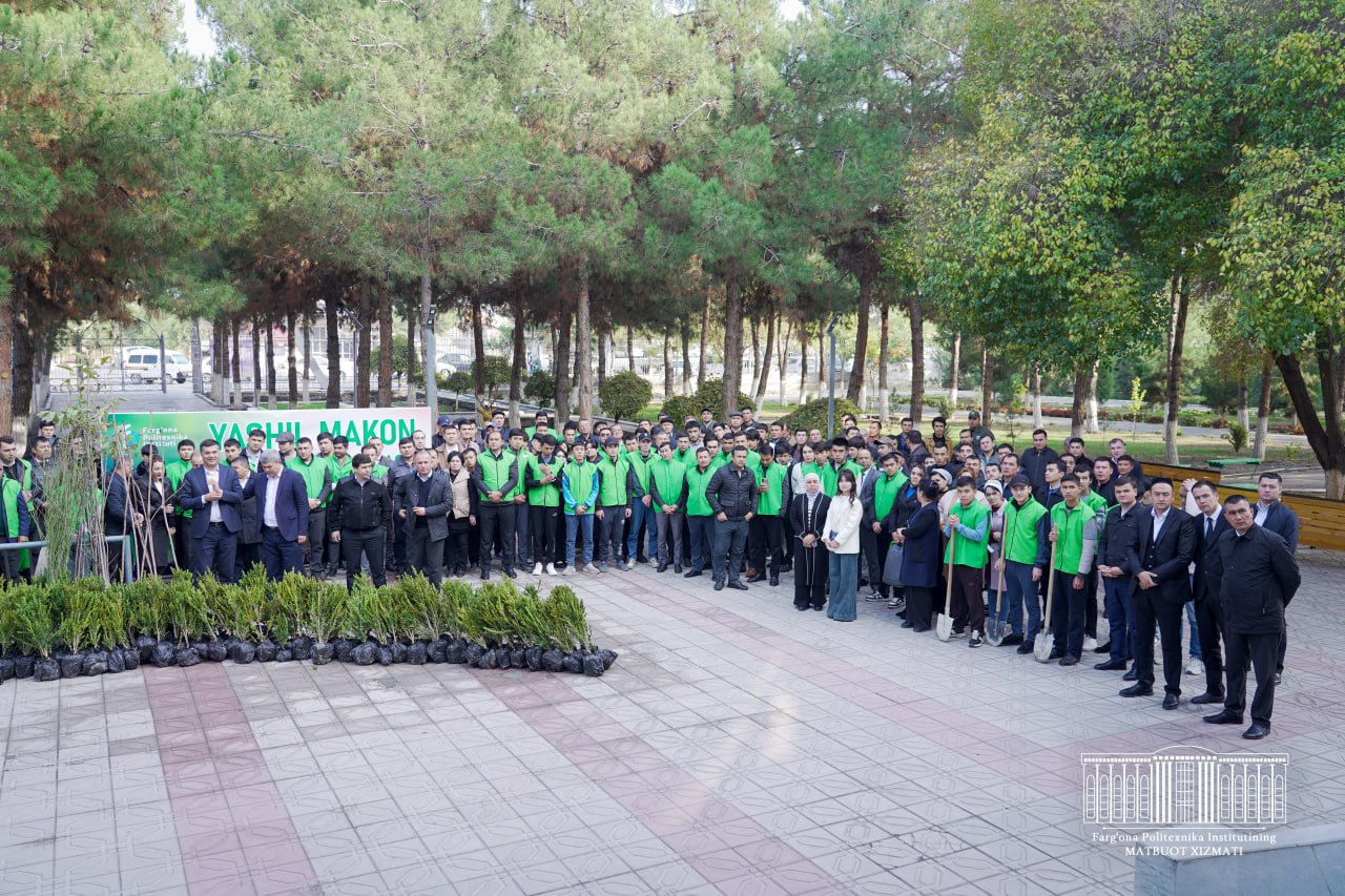 O‘zbekiston Respublikasi Bosh vazirining 2024-yil 18-sentabrdagi 05/1-3053-sonli topshirig‘i, O‘zbekiston Respublikasi Vazirlar Mahkamasining 2024-yil 7-martdagi 144-F/25- son farmoyishiga asosan hamda Farg‘ona politexnika institutining 2024 yil 9 oktyabrdagi №527 sonli bo‘yrug‘iga asosan “Yashil makon” umummilliy loyihasi doirasida manzarali, mevali daraxt va buta ko‘chatlarini ekishning oliy, o‘rta maxsus va professional ta’lim muassasalari kesimida prognoz ko‘rsatkichlari”ni ijrosi ta’minlash maqsadida: