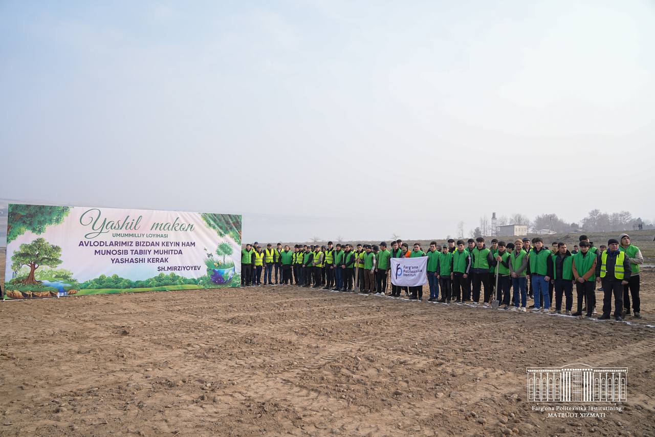 2025 yil bahor mavsumida Farg‘ona politexnika instituti tomonidan Farg‘ona viloyati Quva tumani Kirkidon suv ombori hududida jami 1200 dona manzarali ko‘chatlar (Lipa daraxti – 76 ta, Yapon sakurasi – 100 ta, Sasna – 400 ta, Tuya archasi – 400 ta, Yasin – 224 ta), Farg‘ona shaxar 66-sonli “Muruvvat” MFY Farg‘ona ko‘chasi 86 uyda joylashgan Farg‘ona politexnika instituti hududiga jami 150 dona buta ko‘chatlar (Registr-150 dona), ekilgan. Ushbu ekilgan ko‘chatlarni taluqligi bo‘yicha o‘zlariga biriktirlgan yerlarda, yer egalari tomonidan muhofaza qilish, qurib qolishini oldini olish, oziqlantirilishi, sug‘orilishi, turli xil zararkunandalarga qarshi kimyoviy ishlov berish, parvarish qilish maqsadida Farg‘ona politexnika institutiga biriktirildi.⁷