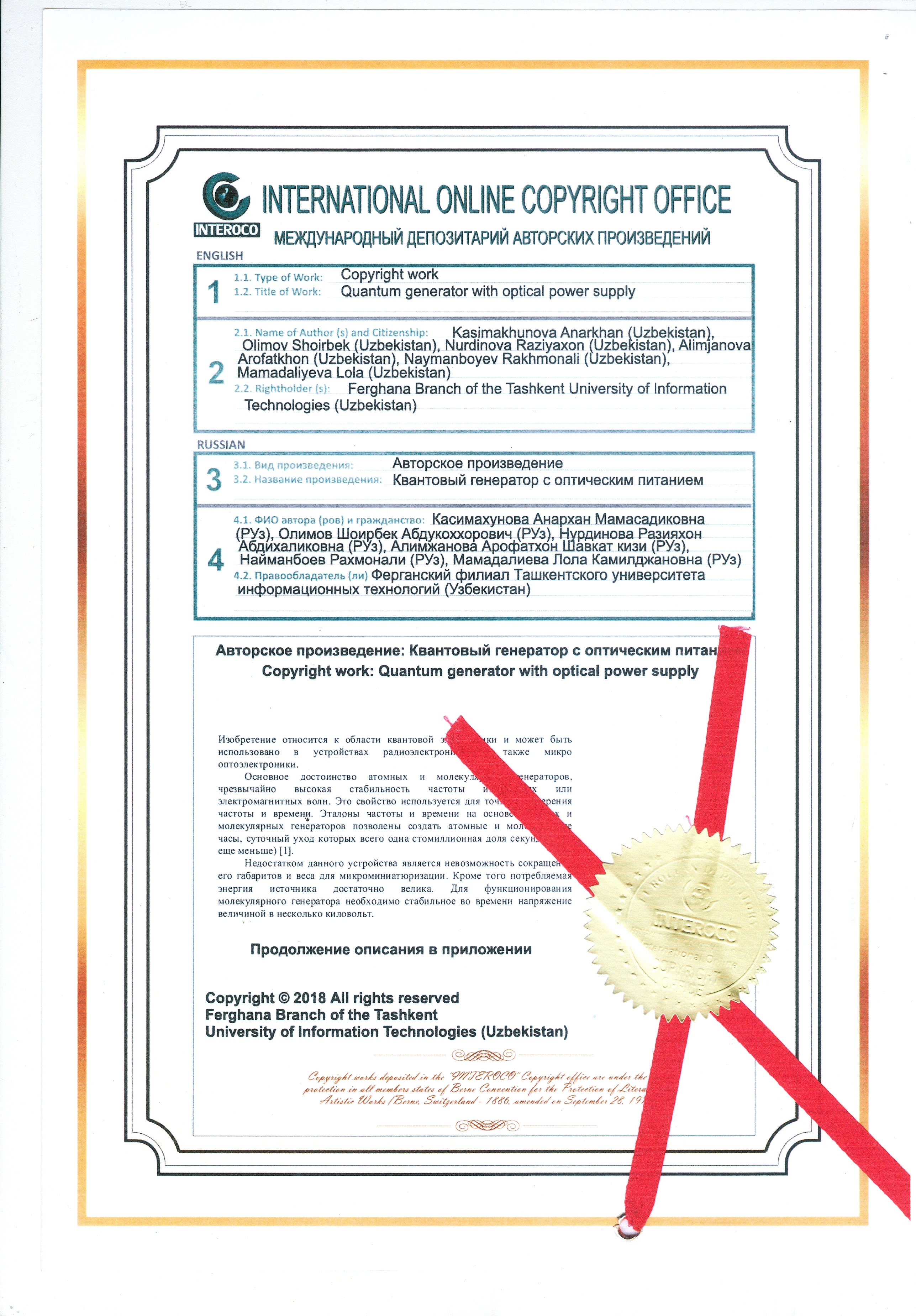 Xorijiy hamkor OTMlari yetakchi olim va mutaxassislari bilan mualliflikda Xalqaro patentlar olinmoqda